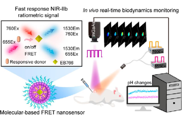 Ting Wang, Ying Chen, Zuyang He, Xiaohan Wang, Shangfeng Wang, and Fan Zhang*. Molecular-Based FRET Nanosensor with Dynamic Ratiometric NIR-IIb Fluorescence for Real-Time In Vivo Imaging and Sensing. Nano Lett., 2023, 23, 10, 4548-4556