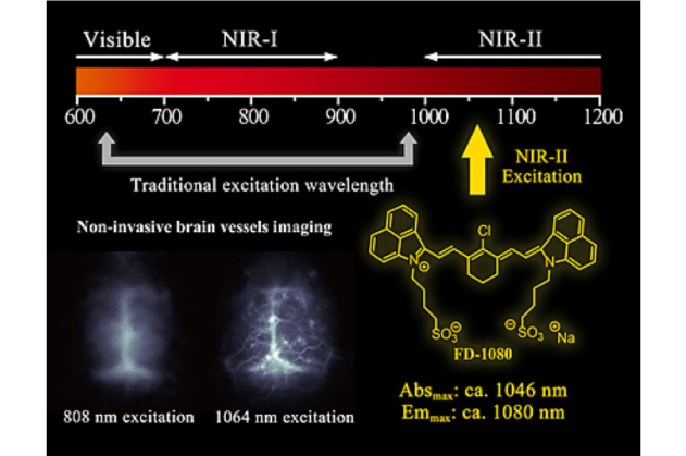 Benhao Li+, Lingfei Lu+, Mengyao Zhao, Zuhai Lei, Fan Zhang*. Efficient 1064-nm NIR-II Excitation Fluorescent Molecular Dye for Deep-tissue High-resolution Dynamic Bioimaging. Angew. Chem. Int. Ed., 2018, 57(25), 7483-7487.