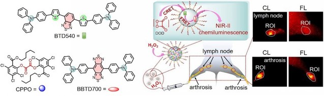 圖1. BTD540、BBTD700和CPPO的結(jié)構(gòu)式、產(chǎn)生NIR-II區(qū)化學(xué)發(fā)光機理及生物應(yīng)用